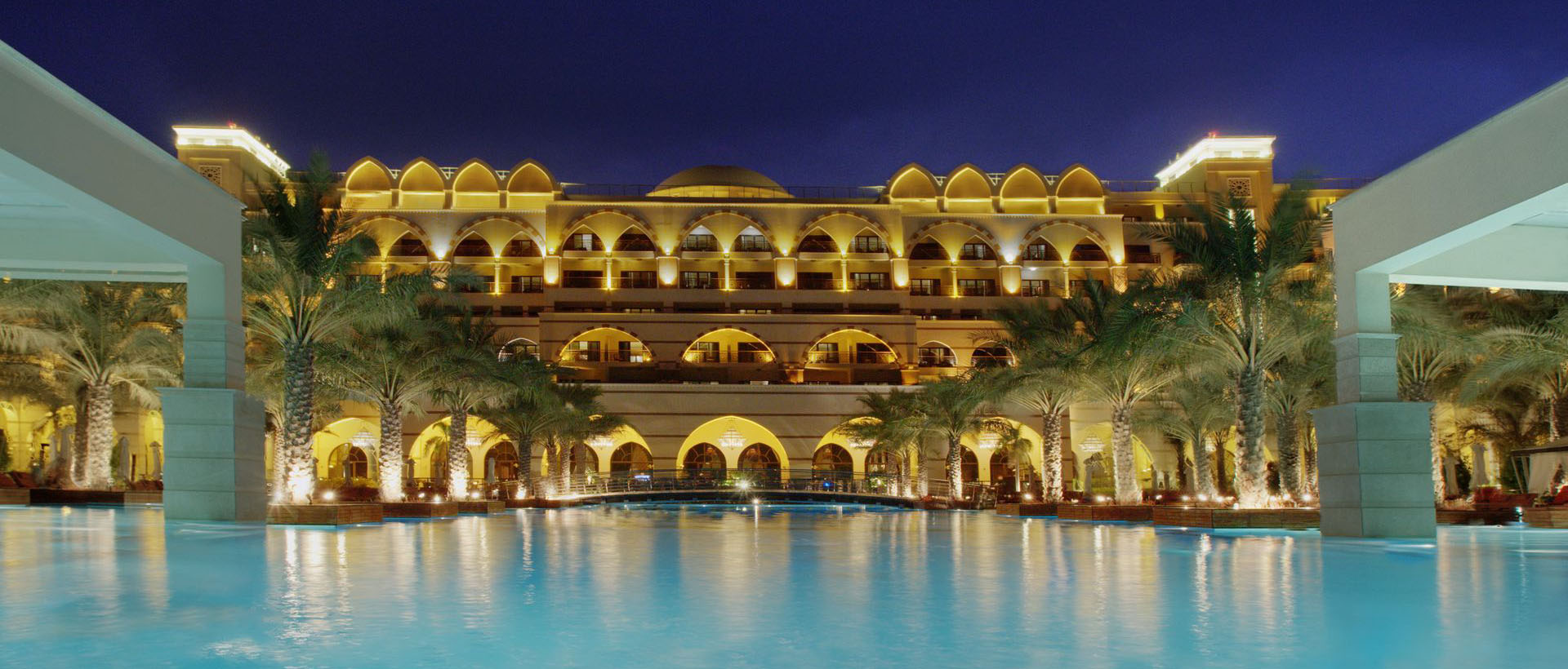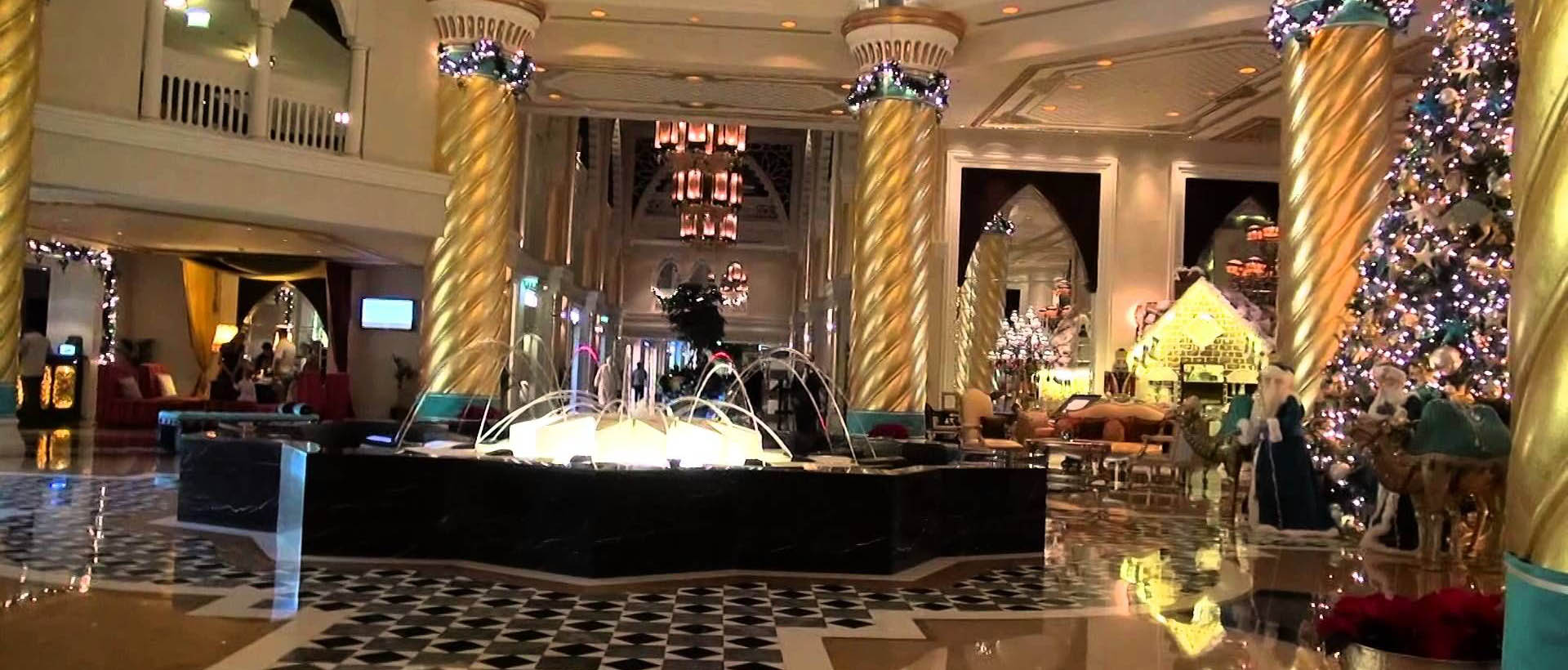 Отель очень красивый, помпезный, блестящий. По словам отельного гида, он был выкуплен у турков и адаптирован под запросы местных шейхов. Всё роскошно, всё сияет. Из окон всех номеров открывается вид на море – на Пальму или Персидский залив. Очень красиво и эффектно ночью. Обычно гости отеля предпочитают вид на Персидский залив, а не на Пальму.