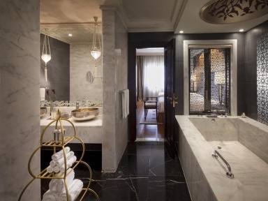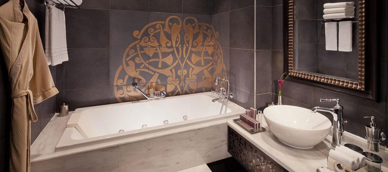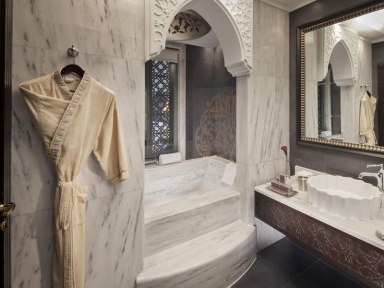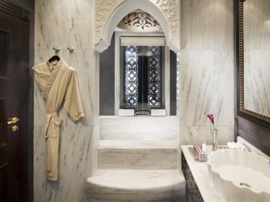 По-восточному роскошные интерьеры, выполненные с особым вниманием к мельчайшим деталям, поражают воображение. Источником вдохновения дизайнеров стали дворцы периода Османской империи. Произведения восточного искусства, достойные лучших музеев, великолепные потолки, расписанные вручную, фрески, отделка мрамором, сверкающие хрустальные люстры создают непередаваемую атмосферу и оживляют в памяти легенды исчезнувшей империи.
