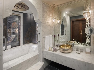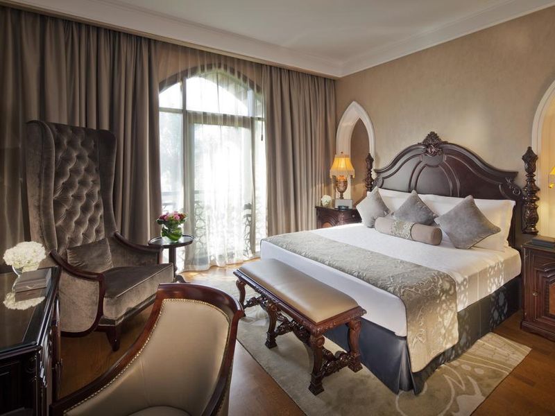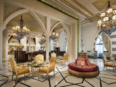 Элитный отель для тех, кто привык к роскоши и ВИП-обслуживанию. Красивый восточный дизайн (золото, парча и прочие сверкающие элементы декора, мрамор, картины, колонны, шикарные люстры), уютная ухоженная зелёная территория, отличный сервис – всё это Jumeirah Zabeel Saray the Palm Dubai.