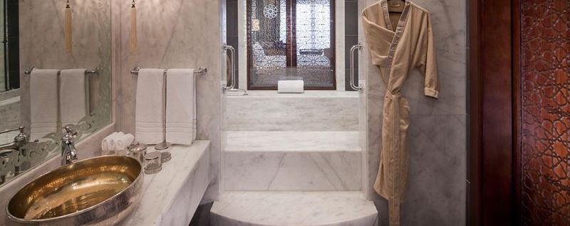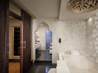 СПА-центр в отеле Zabeel Saray Palm Jumeirah 5* большой, есть сигарный клуб, кинотеатр. SPA отеля является одним из лучших в мире. Там есть бесплатные услуги (сауны, бассейны, джакузи, снежные и паровые комнаты) и платные процедуры – всё действительно на очень высоком уровне. Халаты и шлёпки находятся в раздевалке. После процедур гости отдыхают в специальном зале, там можно перекусить финиками, орешками, фруктами.